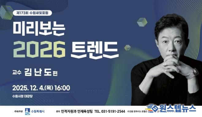 원스텝뉴스 이병희 기자 | 김난도 서울대학교 소비자학과 명예교수가 12월 4일 오후 4시 시청 대강당에서 열리는 제173회 수원새빛포럼 강사로 나선다.