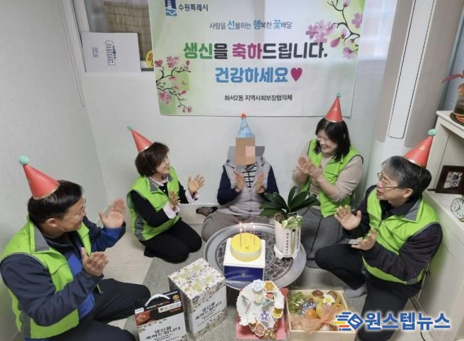 원스텝뉴스 이병희 기자 | 수원시 팔달구 화서2동은 지난 26일, 지역사회보장협의체와 함께 ‘사랑을 선물하는 행복한 꽃배달(선행꽃)’을 추진하며, 지역 학생들의 정성이 더해진 특별한 방문을 진행했다. 생신을 맞으신 관내 저소득 홀몸어르신께 숙지중학교 학생들이 직접 작성한 생일축하 롤링페이퍼와 정성스레 준비한 작은 과일 꾸러미가 함께 전달돼, 축하의 의미를 더욱 깊게 했다.