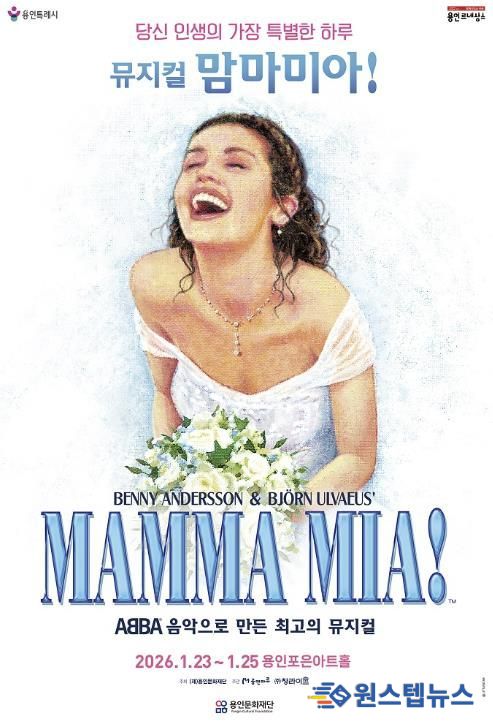 원스텝뉴스 천규영 기자 | 용인문화재단은 오는 2026년 1월 23일부터 25일까지 뮤지컬 ‘맘마미아!’를 용인포은아트홀에서 개최한다고 밝혔다. 관람 연령은 초등학생 이상으로, 겨울방학 기간 가족·친구·연인 등 남녀노소 누구나 함께 즐길 수 있는 대표 뮤지컬을 3일간 총 4회에 걸쳐 선보인다.