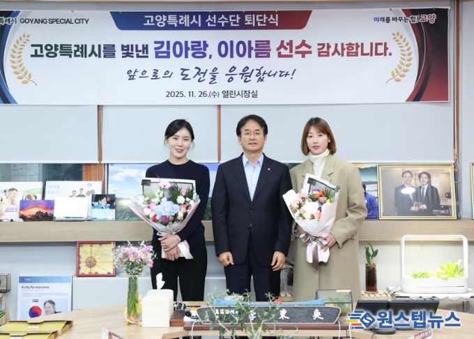 원스텝뉴스 이병희 기자 | 고양특례시는 지난 26일 시청 열린시장실에서 직장운동경기부 소속 김아랑(쇼트트랙), 이아름(태권도) 선수의 고별 행사를 개최했다고 밝혔다.
