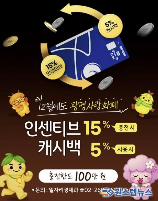 원스텝뉴스 이병희 기자 | 광명시가 지역경제 활성화를 위해 연말까지 광명사랑화폐 인센티브 15%와 캐시백 5% 지원을 이어간다고 28일 밝혔다.