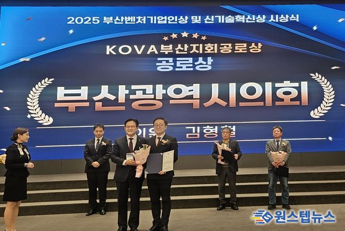 원스텝뉴스 이병희 기자 | 부산광역시의회 의원연구단체인 ‘부산광역시 스타트업 성장 정책 연구회’는 김형철 대표의원이 27일 열린 '2025 벤처인의 날'행사 중 '2025 부산벤처기업인상 및 신기술혁신상 시상식'에서 ‘벤처 30주년 기념 공로상’을 수상했다고 밝혔다.
