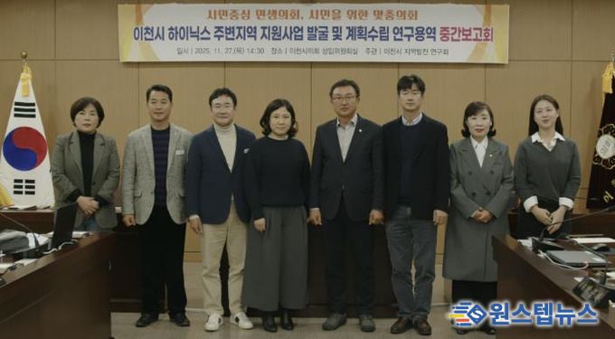 원스텝뉴스 이병희 기자 | 이천시의회 의원연구단체인 ‘이천시 지역발전 연구회’는 27일 시의회 상임위원회실에서 『이천시 하이닉스 주변지역 지원사업 발굴 및 계획 수립 연구용역』 중간보고회를 개최했다.