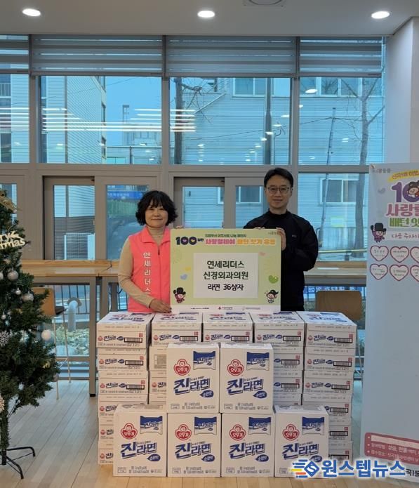 원스텝뉴스 이병희 기자 | 의정부시 신곡1동주민센터는 11월 27일 연세리더스신경외과의원이 저소득 취약계층을 돕기 위해 라면 36상자를 기탁하며 ‘100일간 사랑릴레이 배턴 잇기’에 동참했다고 밝혔다.
