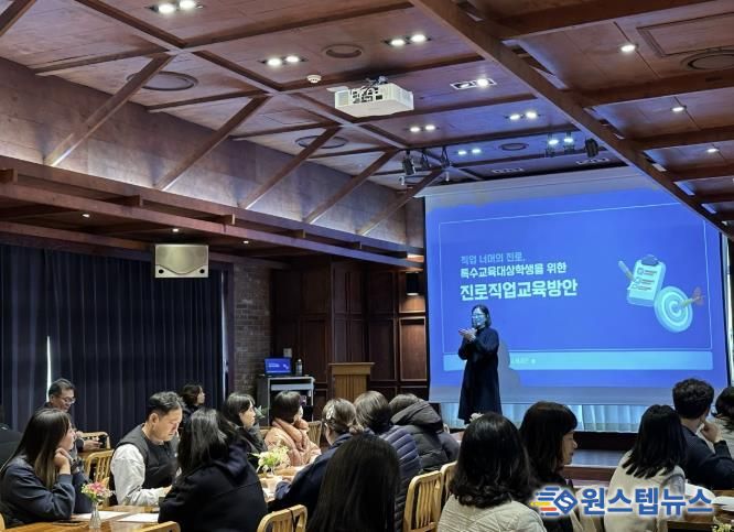 연수 주제는 ‘직업 너머의 진로, 특수교육대상학생을 위한 진로·직업 교육 방안’으로, 교사들은 강의와 소모임을 통해 실질적인 지도 방안과 교육적 방향을 나누고, 지역사회 기관과 연계한 사회전환 및 자립생활 지원 방안을 함께 고민하는 시간을 가졌다.