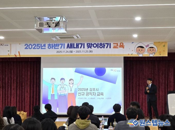 원스텝뉴스 이병희 기자 | 김포시는 지난 24일부터 25일까지 이틀간, 2025년 하반기에 입직한 신규 공직자 72명을 대상으로 ‘2025년 하반기 새내기 맞이하기 교육’을 진행했다.