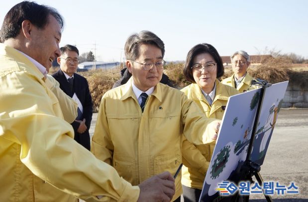 소독시설 점검을 마친 김동연 지사는 28일 하루 동안 현대차그룹 미래 모빌리티 안성 배터리 연구소 투자유치, 안성 동신일반산단 간담회 등 안성 달달버스의 모든 일정을 함께 한 김보라 안성시장, 윤종군 국회의원과 함께 현장에서 즉석 스탠딩 간담회를 갖고 안성시 발전에 대한 의견을 나눴다.