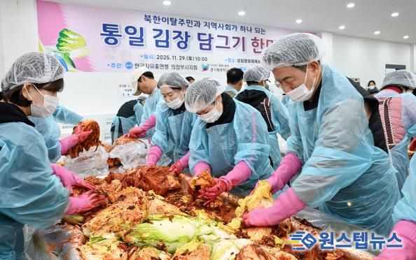 원스텝뉴스 이병희 기자 | 의정부시는 11월 29일 성암문화체육비전센터에서 북한이탈주민과 지역 주민 200여 명이 참여한 가운데 ‘통일 김장 담그기 한마당’ 행사가 성황리에 개최됐다고 밝혔다.