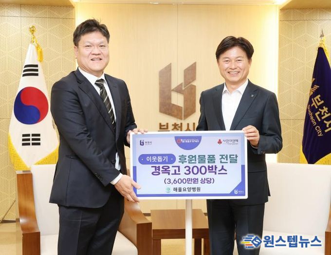 원스텝뉴스 이병희 기자 | 부천시는 지난 1일 해올요양병원에서 지역 취약 돌봄가구를 위해 3,600만 원 상당의 경옥고 300박스를 기탁했다고 2일 밝혔다.