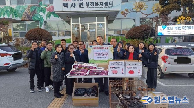 원스텝뉴스 이병희 기자 | 이천설봉하늘땅농원은 지난 12월 1일 지역 외국인 노동자들을 지원하기 위해 백사면행정복지센터에 백미 80kg, 고구마 20kg, 신발 50켤레, 칠면조 2마리를 기탁했다.