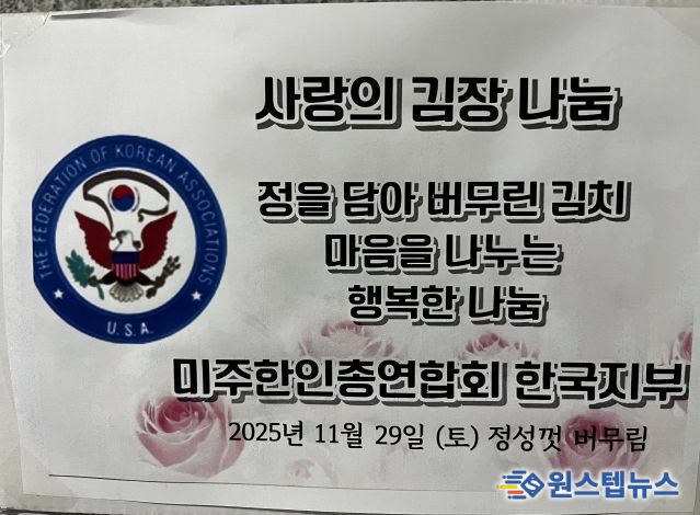 원스텝뉴스 이병희 기자 | 한사랑학교(교장 김봉환)가 미주한인회총연합회 한국지부로부터 김치 11박스를 후원받아 따뜻한 나눔의 시간을 가졌다. 이번 후원은 김치 나눔 행사 일환으로 진행됐으며, 학교 구성원 모두가 참여하는 의미 있는 교류의 장이 됐다.