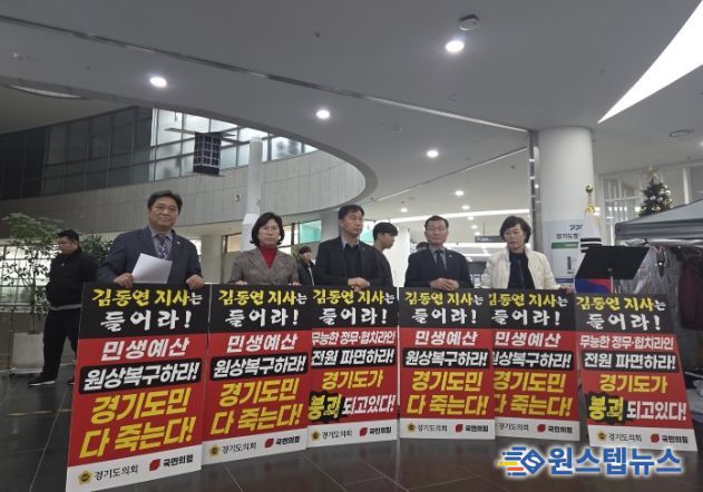원스텝뉴스 이병희 기자 | 경기도의회 교육기획위원회 김호겸 의원(국민의힘, 수원5)은 2025년 12월 2일 백현종 경기도의회 국민의힘 대표의원 및 동료의원들과 함께 경기도 민생예산 복구를 촉구했다.