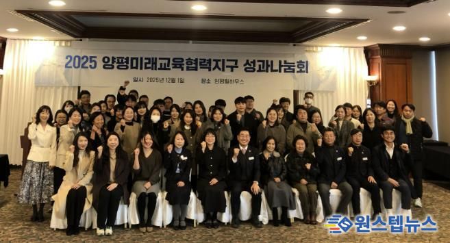 원스텝뉴스 이병희 기자 | 양평군 교육협력센터는 12월 1일 전진선 양평군수, 여미경 양평교육지원청 교육장을 비롯한 관계자 60여 명이 참석한 가운데 ‘2025 양평미래교육협력지구 성과나눔회’를 열고, 올 한 해 추진된 미래교육 협력사업의 주요 성과와 지역교육의 변화를 이끈 현장 사례를 공유했다.