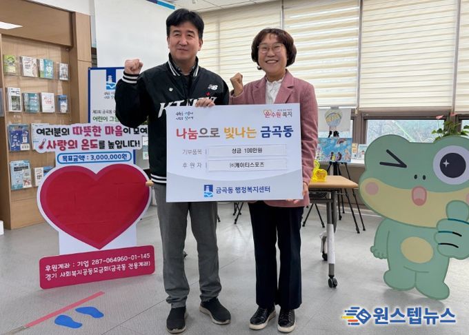 원스텝뉴스 이병희 기자 | 수원시 권선구 금곡동은 지난 28일 ㈜케이티스포츠로부터 김장 나눔 행사를 위한 후원금 100만원을 전달받았다고 밝혔다.