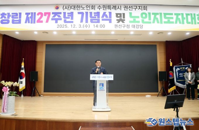 원스텝뉴스 이병희 기자 | 수원특례시의회는 3일 권선구청 대회의실에서 열린‘대한노인회 수원시 권선지구 제27주년 기념식 및 노인지도자대회’에 참석해 어르신 지도자들의 노고를 축하하고 격려했다.