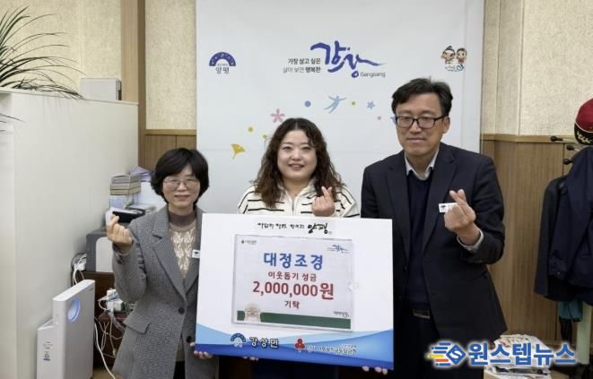 신동호 강상면장은 “매년 꾸준한 나눔을 이어오고 계신 대정조경에 깊이 감사드린다”며 “기탁해 주신 성금은 강상면의 복지 사각지대 해소와 취약계층 지원을 위해 소중히 사용하겠다”고 밝혔다.
