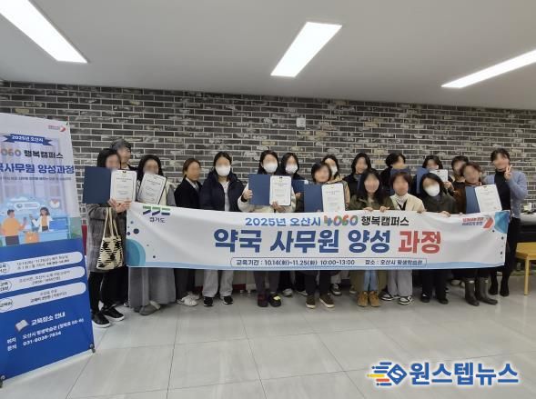 원스텝뉴스 이병희 기자 | 오산시는 지난 3일, 약 8주간 운영된 ‘2025년 오산시 4060 행복캠퍼스 하반기 직업역량 자격과정’을 성공적으로 마무리했다고 밝혔다.