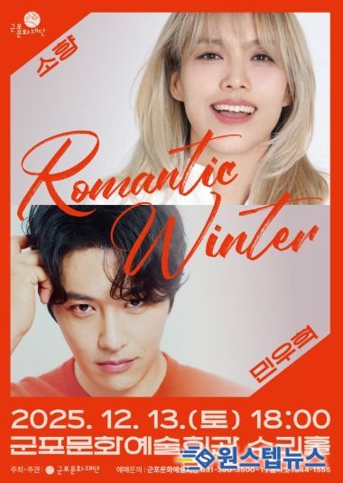 원스텝뉴스 천규영 기자 | 군포문화재단은 오는 12월 13일 오후 6시, 군포문화예술회관 수리홀에서 연말 기획공연 “소향×민우혁 콘서트 'Romantic Winter'”를 개최한다.