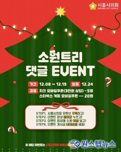 원스텝뉴스 이병희 기자 | 경기 시흥시의회가 다가오는 성탄절을 맞아 시민들과 따뜻한 마음을 나누고 소통을 강화하기 위해 ‘소원트리 댓글 이벤트’를 진행한다.