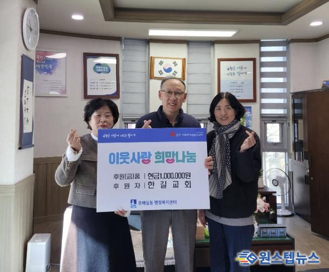 원스텝뉴스 이병희 기자 | 수원시 권선구 호매실동 소재 한길교회는 관내 청소년들의 학업을 지원하고자 9일 오전 호매실동행정복지센터에 장학금을 기탁했다.
