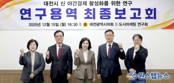 원스텝뉴스 이병희 기자 | 대전시의회 ‘도시마케팅 연구회(회장 이금선 의원)’는 15일 시의회 공감실에서 ‘대전시 신 야간경제 활성화를 위한 연구’ 용역 최종 보고회를 개최했다.