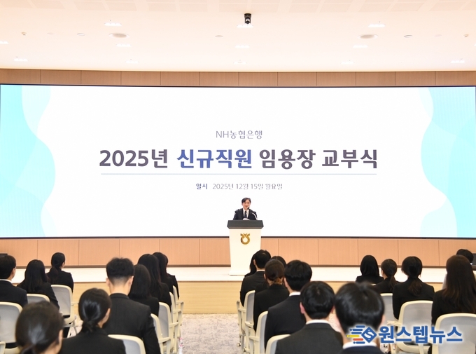 NH농협은행 경기본부는 15일 대회의실에서 김성록 경기본부장, 김현일 경기노조위원장, 송해경 현장지원부장, 박정남 RM마케팅부장 등이 참석한 가운데‘2025년도 6급 신규직원 임용장 교부식’을 가졌다.