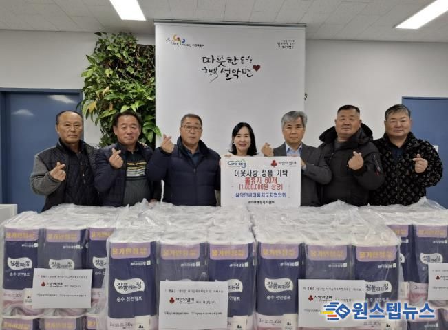 원스텝뉴스 이병희 기자 | 가평군 설악면 새마을지도자협의회 조성태 회장과 임원진들은 최근 행정복지센터를 찾아 이웃사랑 성품 롤휴지 60상자를 기탁했다.