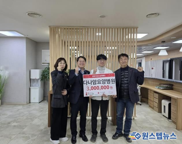 이만환 강하면장은 “추운 겨울, 어려운 이웃들이 따뜻하고 건강하게 겨울을 보낼 수 있도록 도움을 주신 다나암요양병원에 깊이 감사드린다”며 “기탁해 주신 성금이 꼭 필요한 곳에 쓰일 수 있도록 최선을 다하겠다”고 전했다.