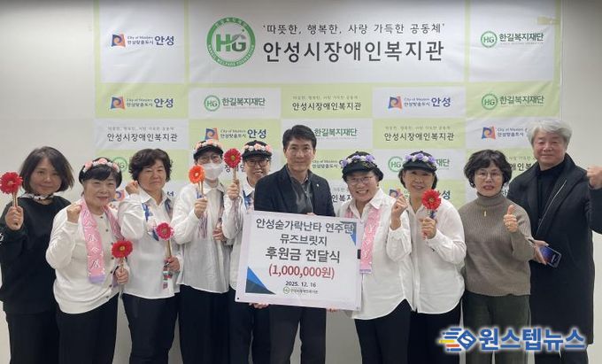 원스텝뉴스 이병희 기자 | 사회복지법인 한길복지재단에서 수탁하고 있는 안성시장애인복지관은 지난 12월 16일, 안성 숟가락 난타 연주단 ‘뮤즈브릿지’로부터 후원금 100만 원을 전달받았다고 밝혔다.