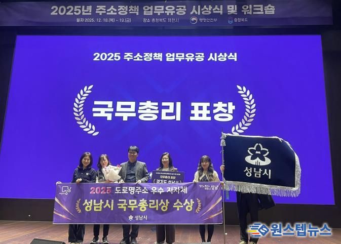 원스텝뉴스 이병희 기자 | 성남시는 행정안전부가 주관한 2025년 주소정책 업무 평가에서 도로명주소 활성화 분야 우수 지자체로 선정돼 국무총리 기관표창을 수상했다고 19일 밝혔다.