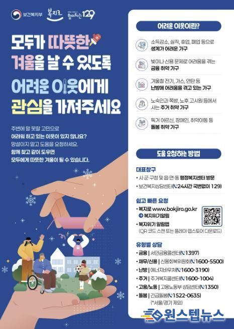 이번 조치는 실업, 난방비 부담 증가, 외부 활동 감소로 인한 사회적 고립 등 겨울철에 심화하는 위기 요인에 선제적으로 대응해 취약계층이 따뜻하고 건강한 겨울을 보낼 수 있도록 지원하기 위해 마련됐다.