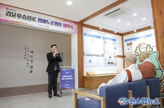 원스텝뉴스 이병희 기자 | 용인특례시는 18일 처인구 남사읍에 있는 처인성역사교육관에서 ‘김윤후승장로’ 명예도로명판 제막식을 열었다.