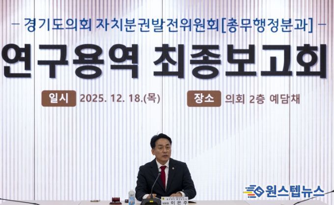 원스텝뉴스 이병희 기자 | 경기도의회 자치분권발전위원회 총무행정분과 이은주 위원장(국민의힘, 구리2)은 18일, '집행기관 견제 강화를 위한 의회 내 상임위원회 조직개편 방안 연구' 최종보고회에 참석해 연구용역 결과를 공유하고 논의했다.