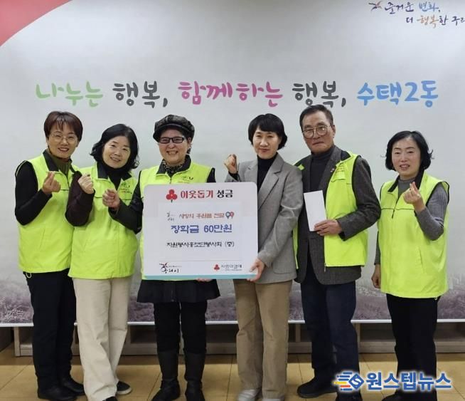 원스텝뉴스 이병희 기자 | 구리시 수택2동 행정복지센터는 지난 18일 구리자원봉사홍보단봉사회로부터 저소득 청소년들의 안정적인 학업 지원을 위한 장학금 60만 원을 전달받았다고 밝혔다.