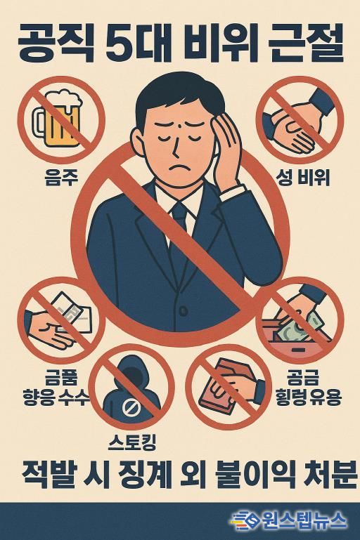 향후 5대 비위가 발생할 경우 비위 정도와 관계없이 중징계 의결을 요구하고, 징계 처분과는 별도로 인사·재정·복지후생 등 전반에 걸친 추가 불이익 조치를 병행해 비위 행위를 강력히 근절해 나갈 방침이다.