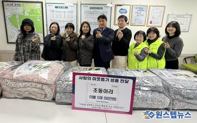 ‘조동아리(좋은 사람들이 모인 동아리 줄임말)’는 지역사회 봉사를 목적으로 결성된 모임으로, 연말 한파에 대비하지 못한 어려운 이웃들이 따뜻한 겨울을 보낼 수 있도록 회원들의 뜻을 모아 이번 후원을 진행했다. 이날 기탁된 이불은 보산동 내 저소득 취약계층 5가구에 전달될 예정이다.