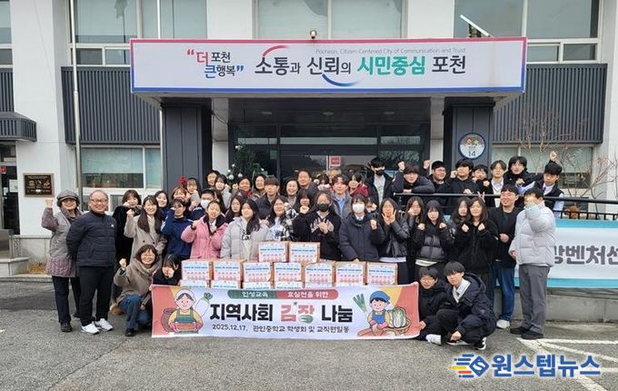 원스텝뉴스 이병희 기자 | 포천시 관인면행정복지센터는 지난 17일 관인중학교(교장 황만식) 학생들이 김장김치 10kg 30박스를 기탁했다고 밝혔다.