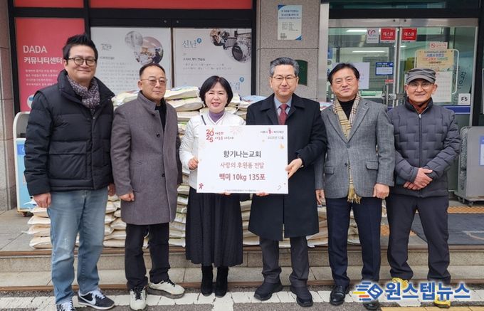 원스텝뉴스 이병희 기자 | 시흥시 계수동에 있는 향기나는교회가 지난 12월 19일 대야동 마을자치과에 백미 10kg 135포를 전달하며 지역 내 취약계층을 위한 따뜻한 나눔을 실천했다.