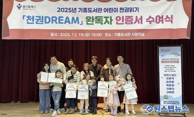 원스텝뉴스 이병희 기자 | 용인특례시 기흥도서관은 19일 기흥도서관 시청각실에서 ‘천권DREAM 완독자 인증서 수여식’을 개최했다고 22일 밝혔다.