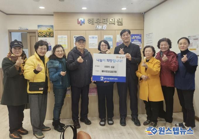 원스텝뉴스 이병희 기자 | 수원시 장안구 정자1동은 지난 19일 해우리의료소비자생활협동조합이 지난 19일 연말을 맞아 어려운 이웃을 돕기 위해 조합원 및 임직원들이 모금한 성금 974천원을 기부해 왔다고 밝혔다.