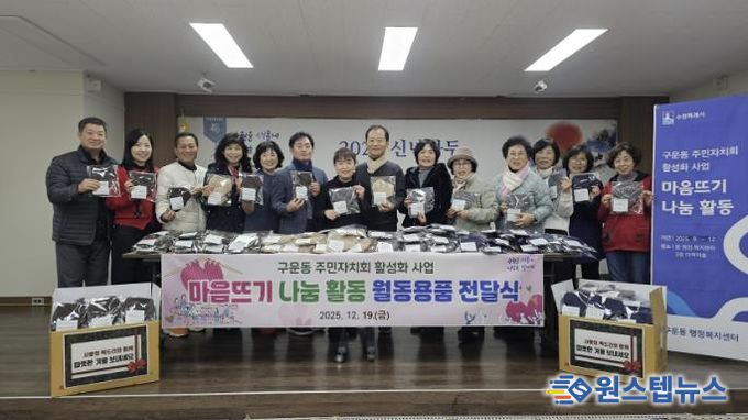 원스텝뉴스 이병희 기자 | 지난 19일, 권선구 구운동 주민자치회가 주민자치회 활성화 사업 일환으로 추진한 ‘마음 뜨기 나눔 활동’을 통해 만든 목도리 400여 개를 구운동 행정복지센터에 전달했다.