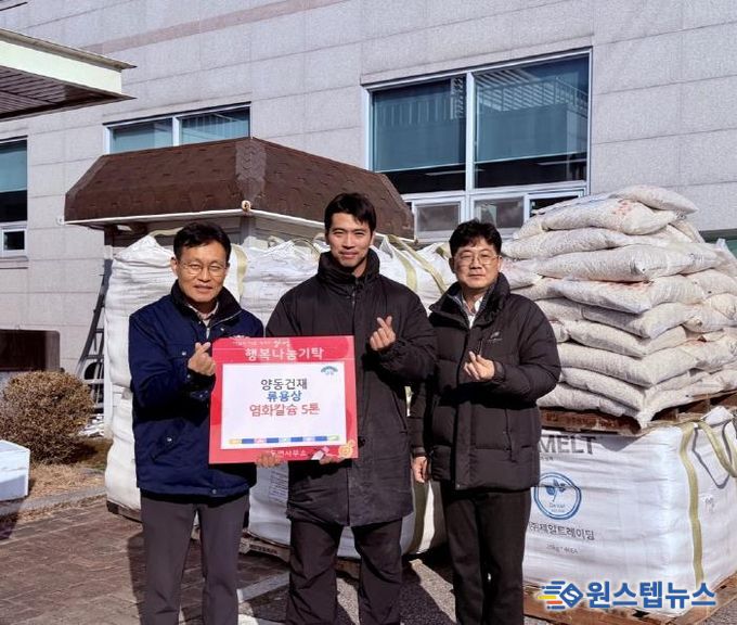 원스텝뉴스 이병희 기자 | 양평군 양동면은 지난 19일 양동건재 류용상 씨가 양동면사무소를 방문해 겨울철 제설작업에 사용될 염화칼슘 5톤을 기탁하며 지역사회 안전과 이웃사랑 실천에 동참했다고 밝혔다.