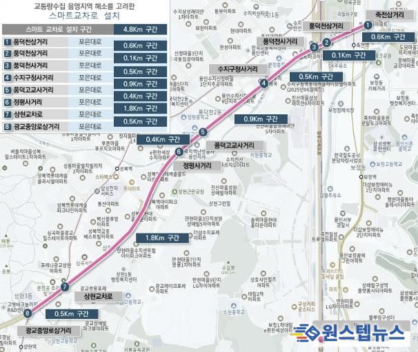 원스텝뉴스 이병희 기자 | 용인특례시는 23일 ‘2025년 용인시 지능형교통체계(ITS) 구축 사업’ 준공에 따라 국도 제43호선 상 주요 교차로 8곳에 ‘스마트교차로’를 적용한다고 밝혔다.