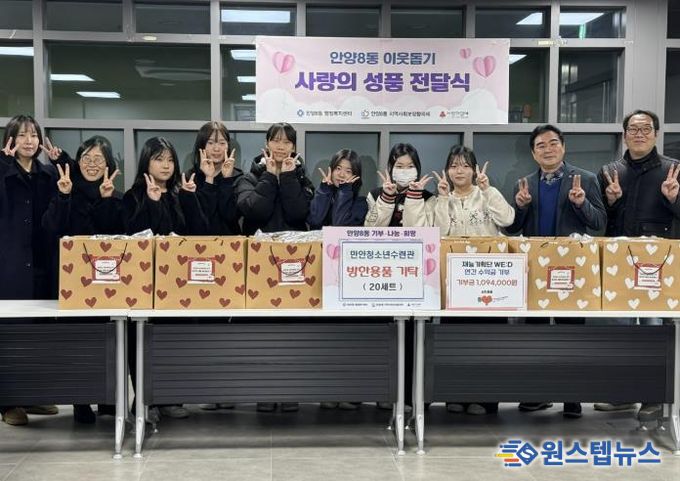 원스텝뉴스 이병희 기자 | 안양시 만안구 안양8동 행정복지센터에 따르면 지난 18일 만안청소년수련관의 청소년 자치활동 프로그램 ‘재능기획단’이 관내 혼자 생활하는 어르신들에게 전달해달라며 센터에 1,094,000원 상당의 방한용품 20세트를 기탁했다고 23일 밝혔다.
