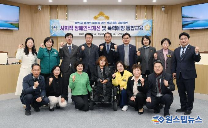 원스텝뉴스 이병희 기자 | 광산구의회가 19일 전체 의원을 대상으로 장애인식 개선 및 4대 폭력 예방을 위한 ‘정치다움 기획강연’을 개최했다.