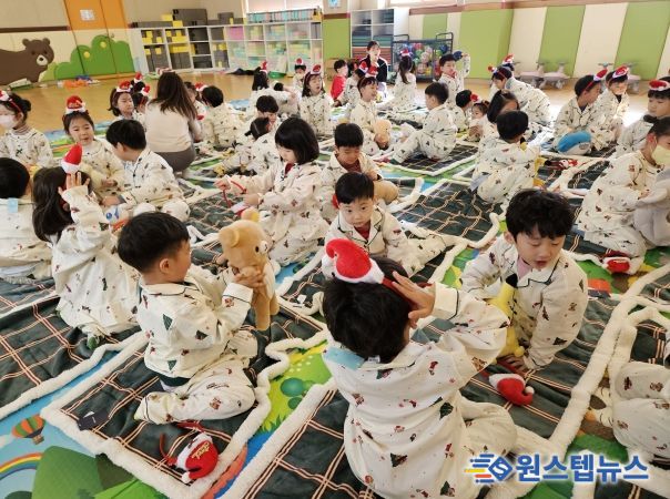 유아들은 “유치원이 집 같아요”, “친구랑 같이 자는 것 같아서 좋아요”, “메리 크리스마스!”라며 즐거운 소감을 전했고, 파자마 차림으로 편안하게 활동에 참여하는 모습이 눈길을 끌었다.