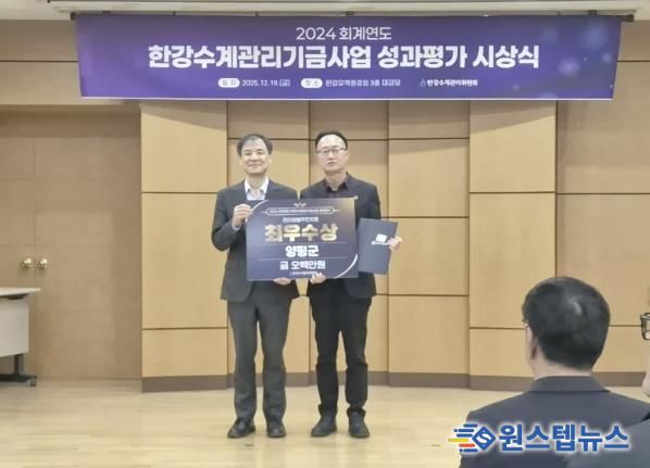 원스텝뉴스 이병희 기자 | 양평군은 지난 19일 한강유역환경청이 실시한 ‘2024년도 한강수계관리기금 성과평가’에서 주민지원사업 부문 최우수, 오염총량관리사업 부문 장려를 수상했다고 밝혔다.