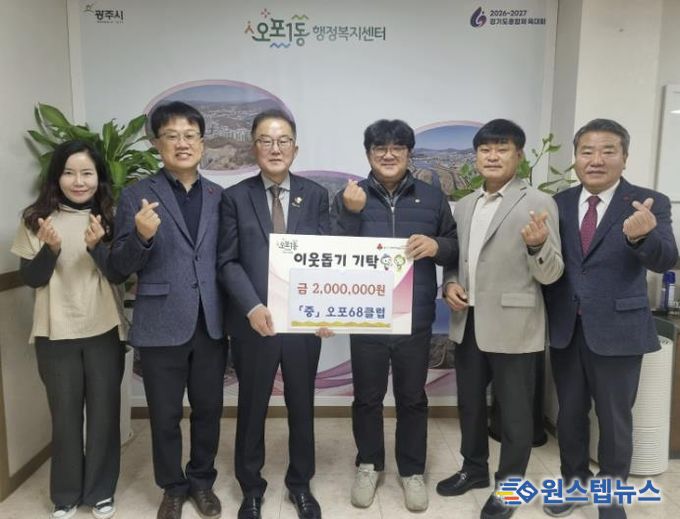 오포68클럽은 지역사랑 봉사 활동을 목적으로 오포 권역 내 1968년생을 주축으로 2004년 결성된 친목 단체다. 이번에 기탁된 성금은 오포 권역 4개 동(오포1·2동, 능평동, 신현동)의 취약계층을 지원하는 데 사용될 예정이다.