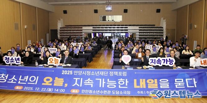 원스텝뉴스 이병희 기자 | 안양시청소년재단은 지난 22일 만안청소년수련관 도담소극장에서 120명이 참석한 가운데 ‘청소년의 오늘, 지속가능한 내일을 묻다’를 주제로 2025년 안양시청소년재단 정책포럼을 개최했다고 23일 밝혔다.