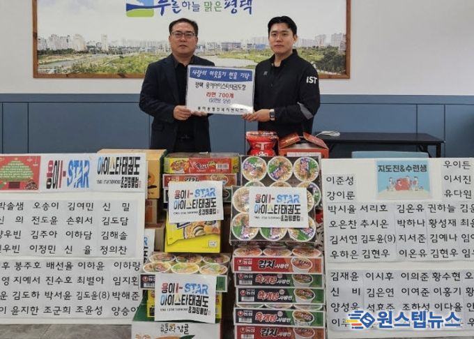 원스텝뉴스 이병희 기자 | 평택시 용이동에 있는 용이아이스타태권도장이 23일 연말을 맞아 관내 어려운 이웃들에게 전달해달라며 라면 700개를 용이동 행정복지센터에 기부했다.